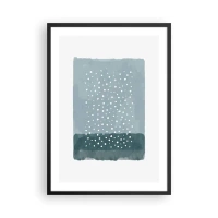 Plakát v černém rámu - Abstraktní kompozice s bílými tečkami na modrém pozadí. - 50x70cm - Pěstováno na modři - Moderní nástěnná dekorace do obývacího pokoje a ložnice ARTTOR