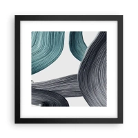 Plakát v černém rámu - Smaragdové a černé vlny - 30x30 cm