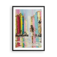Plakát v černém rámu - Žena mezi barevnými budovami v impresionistickém stylu - 50x70cm - Pojď se mnou - Moderní nástěnná dekorace do obývacího pokoje a ložnice ARTTOR