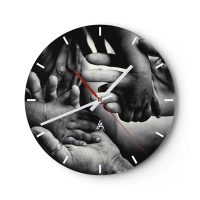 Nástěnné hodiny - Ruce se dotýkají v gestu jednoty - 30x30cm - Být člověkem - Moderní nástěnná dekorace do obývacího pokoje, kuchyně a ložnice ARTTOR