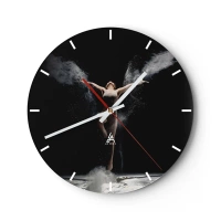 Nástěnné hodiny - Tanečnice v dynamické póze obklopená oblaky prachu. - 30x30cm - Elfové existují - Moderní nástěnná dekorace do obývacího pokoje, kuchyně a ložnice ARTTOR