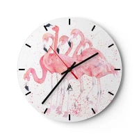 Nástěnné hodiny - Skupina růžových plameňáků v uměleckém stylu akvarelu. - 30x30cm - Růžový ansámbl - Moderní nástěnná dekorace do obývacího pokoje, kuchyně a ložnice ARTTOR