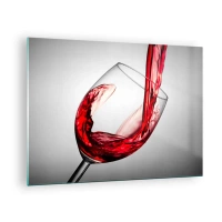 Obraz na skle - Červené víno nalévané do sklenice na světlém pozadí - 70x50cm - Barva - pohyb - zvuk - Moderní nástěnná dekorace do obývacího pokoje a ložnice ARTTOR