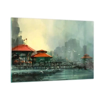 Obraz na skle - Slunečný den v přístavu - 120x80 cm
