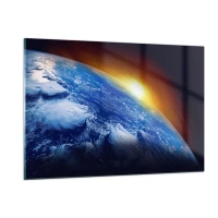 Obraz na skle - Východ slunce nad modrou planetou - 120x80 cm