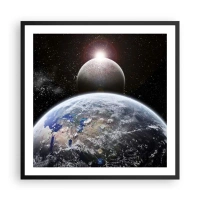 Plakát v černém rámu - Vesmírná krajina - východ slunce - 60x60 cm