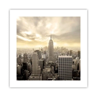 Plakát v bílém rámu - New York utkaný z šedi - 40x40 cm