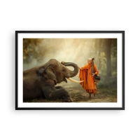 Fototapeta Premium Canvas - Setkání na cestách - Asie, Slon, Mnich - 200x140 cm