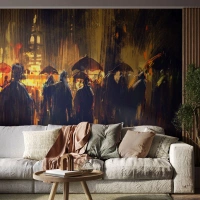 Fototapeta Premium Sand - Následovníci deště - Město, Lidé, Deštník - 400x280 cm