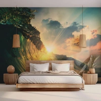 Fototapeta Samolepicí Deluxe Sticker - Surfaři, kde jsi? - Mořská vlna, Paprsky slunce, Příroda - 400x280 cm
