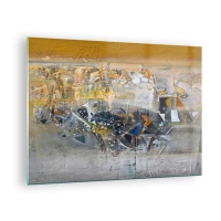 Obraz na skle - Umělecká abstrakce ve zlaté, stříbrné a šedé barvě - 70x50cm - Všechno se podaří - Moderní nástěnná dekorace do obývacího pokoje a ložnice ARTTOR