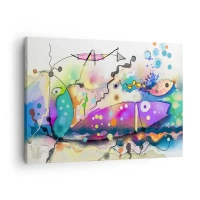 Obraz na plátně - Abstraktní ryby v barevné, surrealistické kompozici - 70x50cm - Chybí slova! - Moderní nástěnná dekorace do obývacího pokoje a ložnice ARTTOR