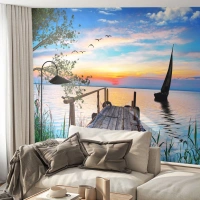 Fototapeta Premium Sand - Dobrý večer - Krajina, jezero, Dřevěný most - 400x280 cm
