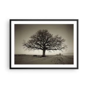 Obraz na skle - Osamělý strom v monochromatické krajině - 70x50cm - Odtud až na věčnost - Moderní nástěnná dekorace do obývacího pokoje a ložnice ARTTOR