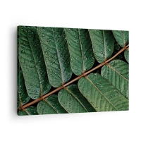 Obraz na plátně - Makro snímek zelených listů s kapkami rosy - 70x50cm - V zeleném rytmu - Moderní nástěnná dekorace do obývacího pokoje a ložnice ARTTOR