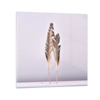 Nástěnné hodiny - Elegantní motiv zlatého peří na světlém pozadí - 30x30cm - Proti nicotě - Moderní nástěnná dekorace do obývacího pokoje, kuchyně a ložnice ARTTOR