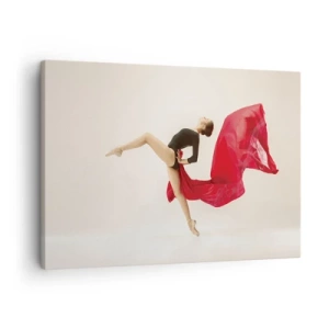 Obraz na plátně - Dynamická tanečnice v černém oblečení a červené látce v pohybu. - 70x50cm - Červené a černé - Moderní nástěnná dekorace do obývacího pokoje a ložnice ARTTOR