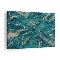 Obraz na plátně - Texturovaný mramorový vzor v odstínech tyrkysové a zlaté - 70x50cm - Zlatá žíla - Moderní nástěnná dekorace do obývacího pokoje a ložnice ARTTOR