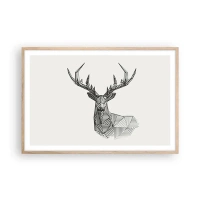 Plakát v rámu světlý dub - Jelen v kubistickém stylu - 61x91 cm