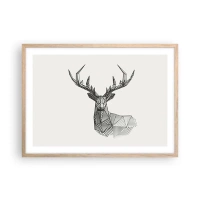 Plakát v rámu světlý dub - Jelen v kubistickém stylu - 91x61 cm