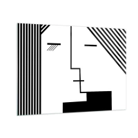 Obraz na plátně - Geometrická abstrakce polibku v černé a bílé - 70x50cm - Prostě polibek - Moderní nástěnná dekorace do obývacího pokoje a ložnice ARTTOR