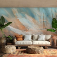 Fototapeta Standard Eco - Jemné peří v pastelových odstínech modré a broskvové - 100x70cm - V krajině něhy - Moderní nástěnná dekorace do obývacího pokoje a ložnice ARTTOR