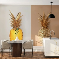 Fototapeta Standard Eco - Půlka ananasu a zlatý ananas na rozděleném pozadí - 100x70cm - Ananas pro nás - Moderní nástěnná dekorace do obývacího pokoje a ložnice ARTTOR