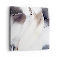 Obraz na plátně - Detail jemného peří v odstínech bílé a šedé - 70x50cm - Téměř andělské - Moderní nástěnná dekorace do obývacího pokoje a ložnice ARTTOR