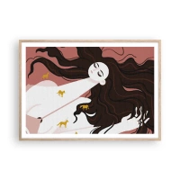 Plakát v rámu světlý dub - Sen o zlatém koni - 100x70 cm