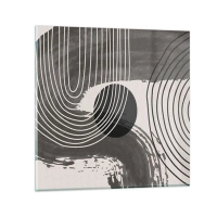 Nástěnné hodiny - Černobílé čáry ve vlnitém rytmu obklopující černý kruh - 30x30cm - Ovál vítězí - Moderní nástěnná dekorace do obývacího pokoje, kuchyně a ložnice ARTTOR