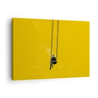 Obraz na plátně - Osoba na houpačce na pozadí sytě žluté - 70x50cm - Den jako každý jiný - Moderní nástěnná dekorace do obývacího pokoje a ložnice ARTTOR