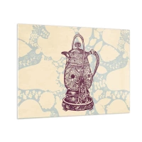 Obraz na skle - Zdobený vintage džbán na světlém pozadí s ornamentem - 70x50cm - Krása všedního dne - Moderní nástěnná dekorace do obývacího pokoje a ložnice ARTTOR