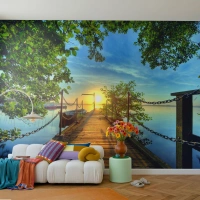 Fototapeta Samolepicí Deluxe Sticker - Západ u vody - Krajina, jezero, Plachetnice - 300x210 cm