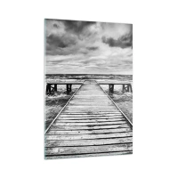 Plakát v černém rámu - Černobílé dřevěné molo nad rozbouřeným mořem - 50x70cm - Čekám na vítr, co rozfouká… - Moderní nástěnná dekorace do obývacího pokoje a ložnice ARTTOR