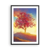 Plakát v černém rámu - Strom s červenými listy na pozadí zapadajícího slunce - 50x70cm - Poutník u cíle - Moderní nástěnná dekorace do obývacího pokoje a ložnice ARTTOR