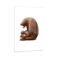 Plakát v černém rámu - Medvědice objímá dva malé medvídky v upřímném objetí - 50x70cm - Sladké sny, děti - Moderní nástěnná dekorace do obývacího pokoje a ložnice ARTTOR