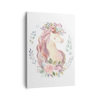 Fototapeta Standard Eco - Pastelový jednorožec mezi květinami a listy - 100x70cm - Pozvánka do říše pohádek - Moderní nástěnná dekorace do obývacího pokoje a ložnice ARTTOR