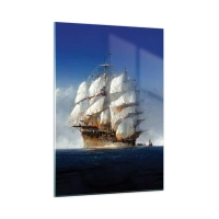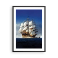 Plakát v černém rámu - Plachetnice na volném moři pod plnými plachtami na slunci - 50x70cm - The great glory! - Moderní nástěnná dekorace do obývacího pokoje a ložnice ARTTOR