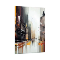 Plakát v černém rámu - Abstraktní panorama města v odstínech šedé a oranžové - 50x70cm - Deštivý den - Moderní nástěnná dekorace do obývacího pokoje a ložnice ARTTOR