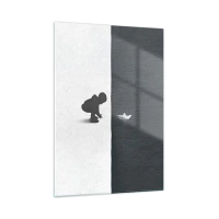 Plakát v černém rámu - Dítě naklánějící se nad vodu s papírovou lodičkou - 50x70cm - Velká výprava - Moderní nástěnná dekorace do obývacího pokoje a ložnice ARTTOR