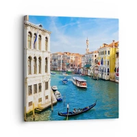 Nástěnné hodiny - Malebný výhled na benátský kanál s gondolami a budovami - 30x30cm - Doprava jediná na světě - Moderní nástěnná dekorace do obývacího pokoje, kuchyně a ložnice ARTTOR
