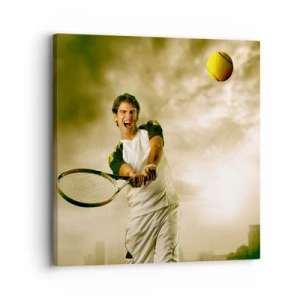 Nástěnné hodiny - Tenista odpaluje míč proti zlatavé obloze - 30x30cm - Energie a radost - Moderní nástěnná dekorace do obývacího pokoje, kuchyně a ložnice ARTTOR