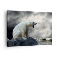 Obraz na plátně - Lední medvěd na skalách nad rozbouřeným mořem - 70x50cm - Samotný král Arktidy - Moderní nástěnná dekorace do obývacího pokoje a ložnice ARTTOR