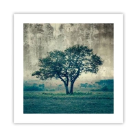 Plakát v černém rámu - Jabloň na modrém poli? - 40x40 cm