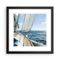 Nástěnné hodiny - Paluba plachetnice na otevřeném moři za slunečného dne - 30x30cm - Ahoj, dobrodružství - Moderní nástěnná dekorace do obývacího pokoje, kuchyně a ložnice ARTTOR
