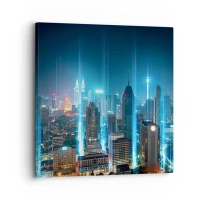 Nástěnné hodiny - Noční město s osvětlenými mrakodrapy - 30x30cm - Berlinským způsobem do nebe - Moderní nástěnná dekorace do obývacího pokoje, kuchyně a ložnice ARTTOR