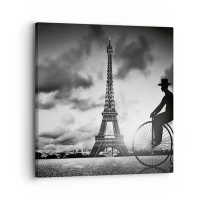 Nástěnné hodiny - Eiffelova věž s cyklistou na pozadí dramatické oblohy - 30x30cm - Touha po Belle Epoque - Moderní nástěnná dekorace do obývacího pokoje, kuchyně a ložnice ARTTOR
