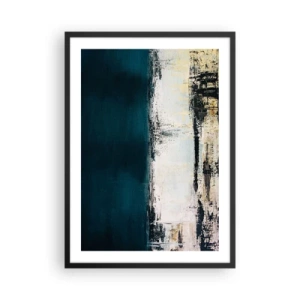 Plakát v černém rámu - Abstraktní kompozice v tmavě modrých a béžových tónech - 50x70cm - Horizontální kompozice - Moderní nástěnná dekorace do obývacího pokoje a ložnice ARTTOR