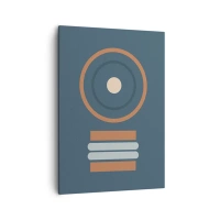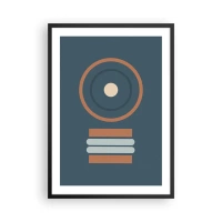 Plakát v černém rámu - Geometrický vzor s kruhy a obdélníky v odstínech modré a hnědé - 50x70cm - Podstata věcí - Moderní nástěnná dekorace do obývacího pokoje a ložnice ARTTOR