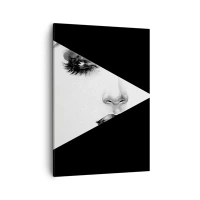 Plakát v černém rámu - Minimalistický portrét ženy v černé a bílé s geometrickým členěním. - 50x70cm - Vždycky neobjevená - Moderní nástěnná dekorace do obývacího pokoje a ložnice ARTTOR